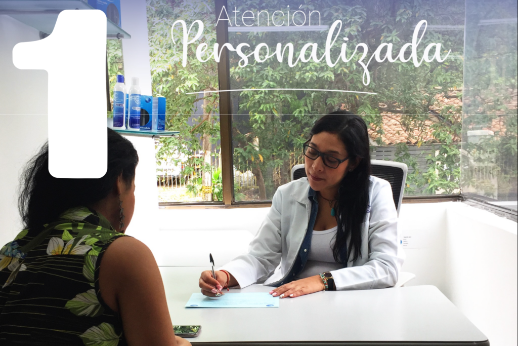 Durante la primera cita, nuestro especialista realiza una evaluación integral de tu cuero cabelludo y estado capilar, esta cita dura alrededor de unos 30 – 40 minutos. A partir de estos resultados, diseñaremos un plan personalizado según tus necesidades.